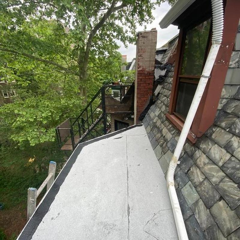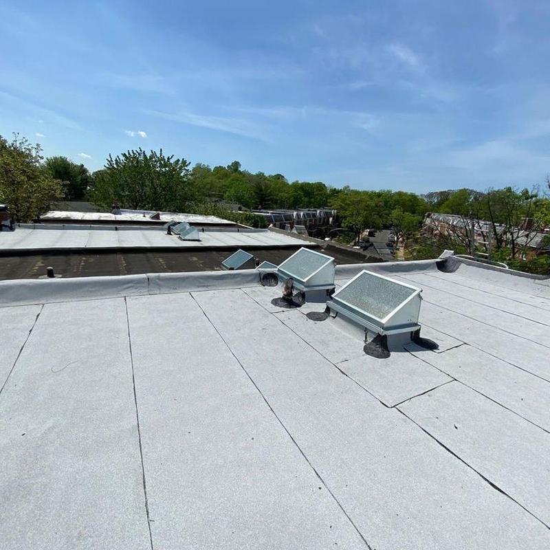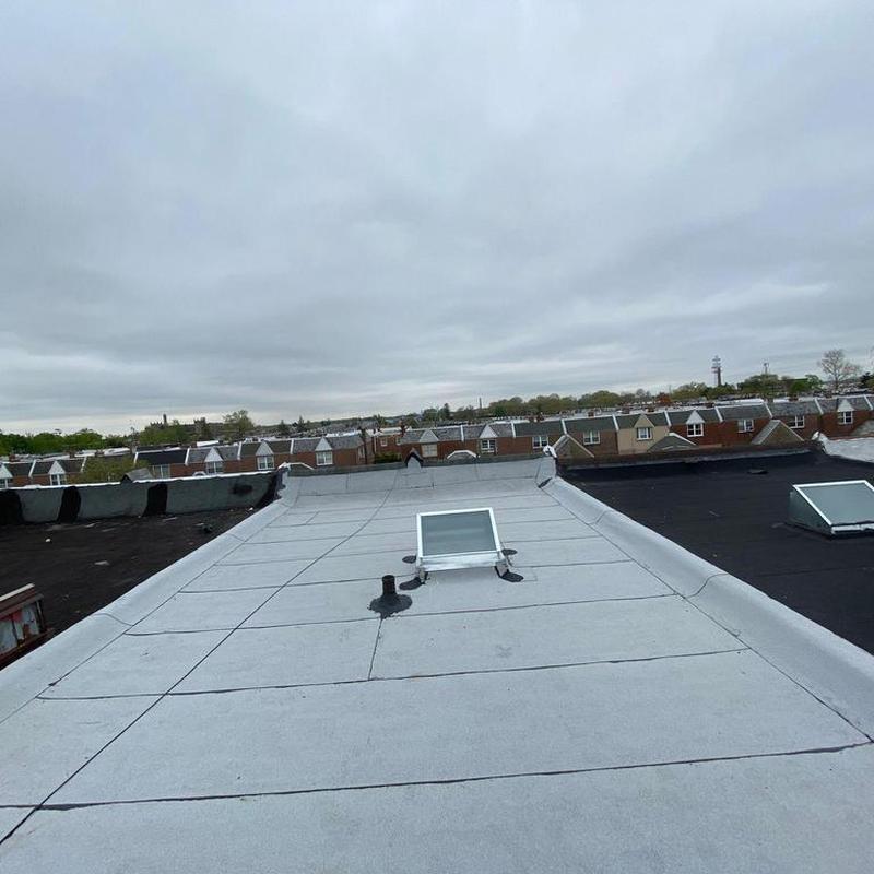 Umbrella Roof installed a Firestone Modified Bitumen flat roof and a new skylight on a residential building in the Carroll Park neighborhood of Philadelphia, PA. This flat roof system offers consistent surface protection and supports improved natural light through the skylight installation.