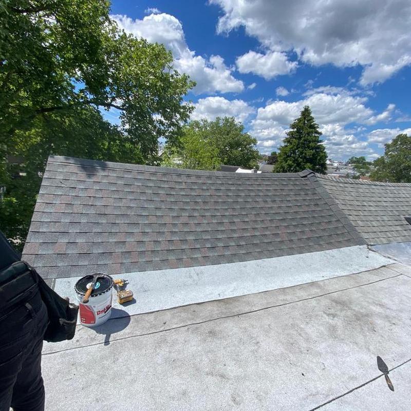 Umbrella Roof completed a shingle roof installation in Philadelphia's Crestmont Farms neighborhood, installing a GAF Timberline HDZ shingle system, Firestone Modified Bitumen flat roof, and 5K seamless gutters to enhance durability and optimize water drainage for local weather conditions.