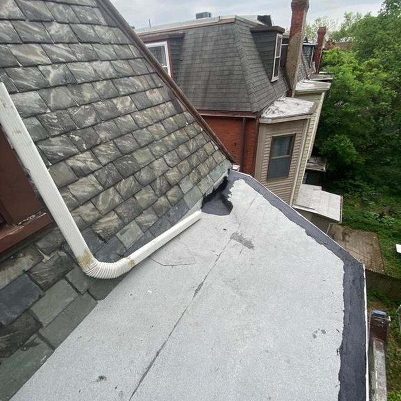 Umbrella Roof completed a flat roof installation in Philadelphia, Pennsylvania. The crew installed Firestone modified bitumen on flat roof areas and added a new mansard shingle roof. This project combined flat roofing and pitched roof elements to meet structural and weatherproofing needs.