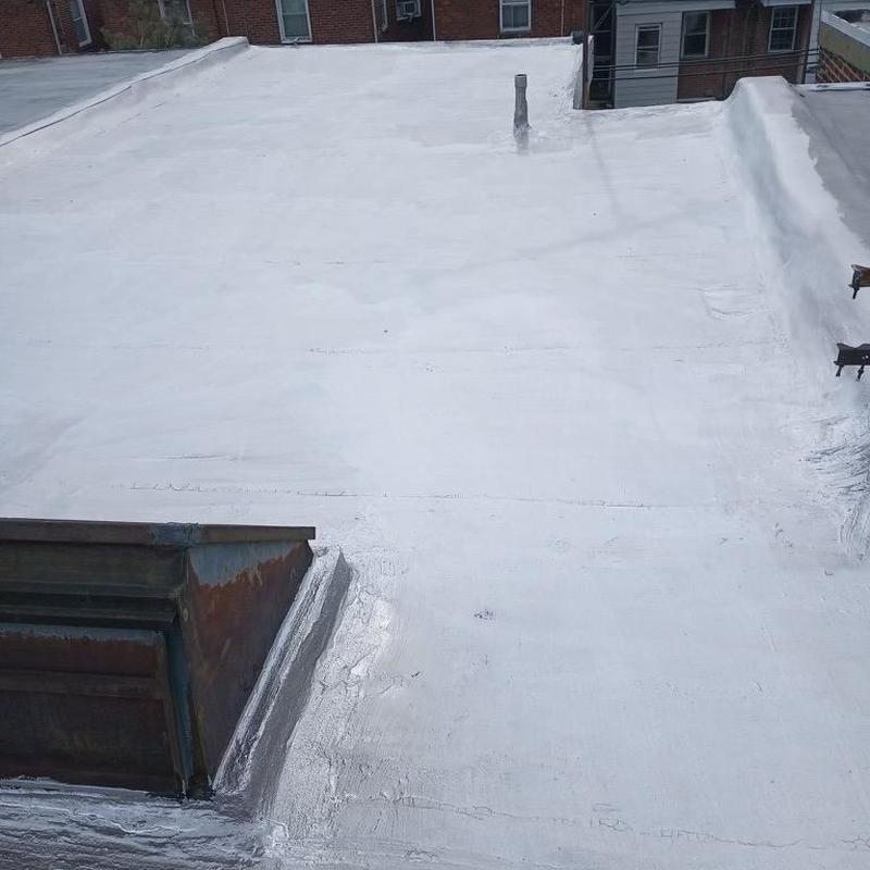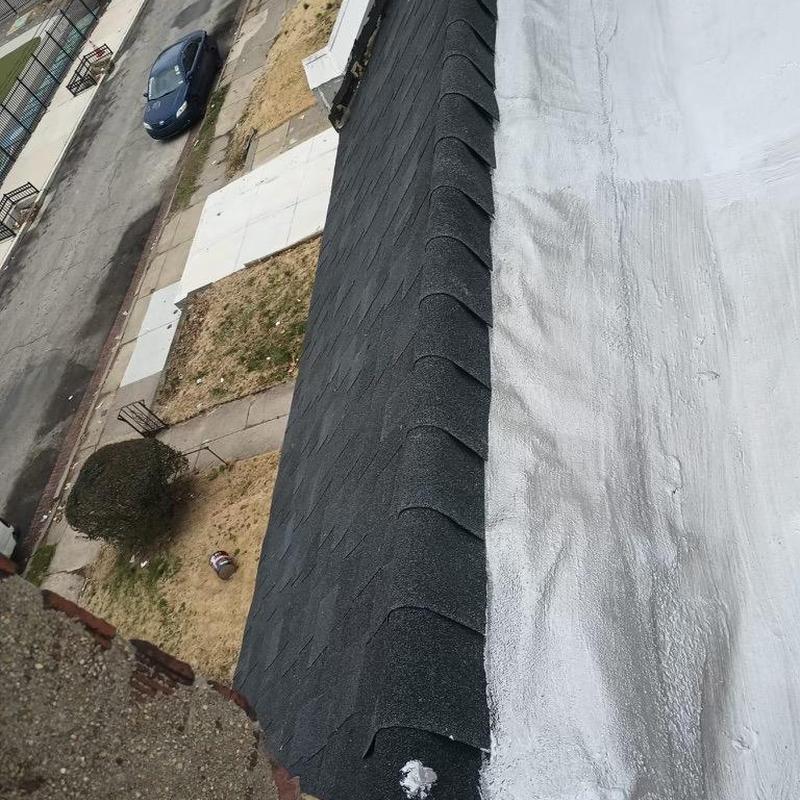 Umbrella Roof completed a shingle roof installation in Northeast Philadelphia, PA, using the GAF Timberline HDZ system on a mansard roof. The team performed flat roof maintenance by applying roof cement to edges, penetrations, and flashing, followed by an aluminum silver coat to help extend the roof's lifespan.