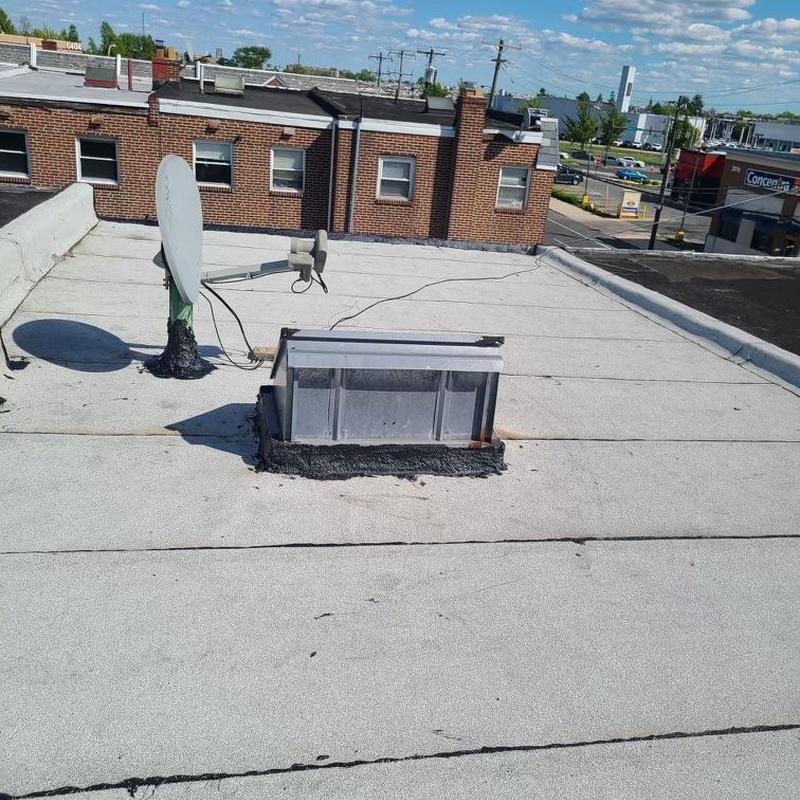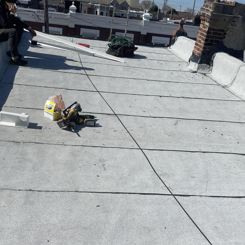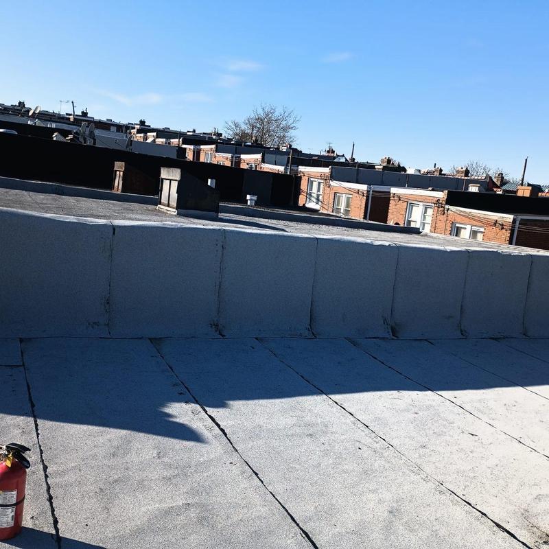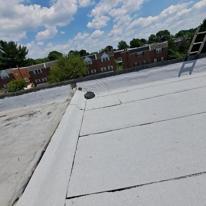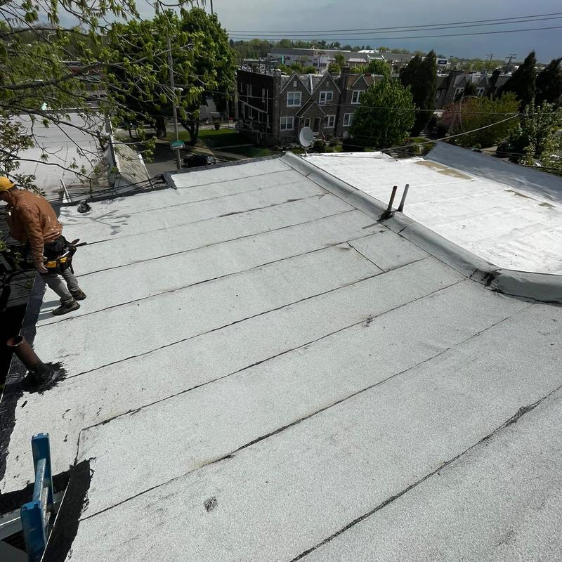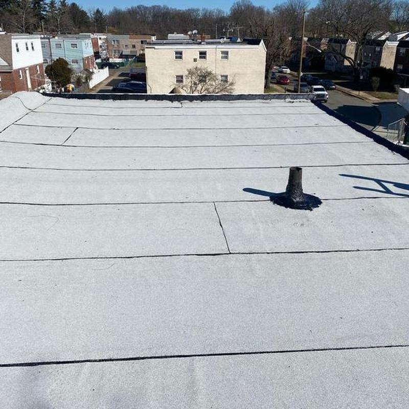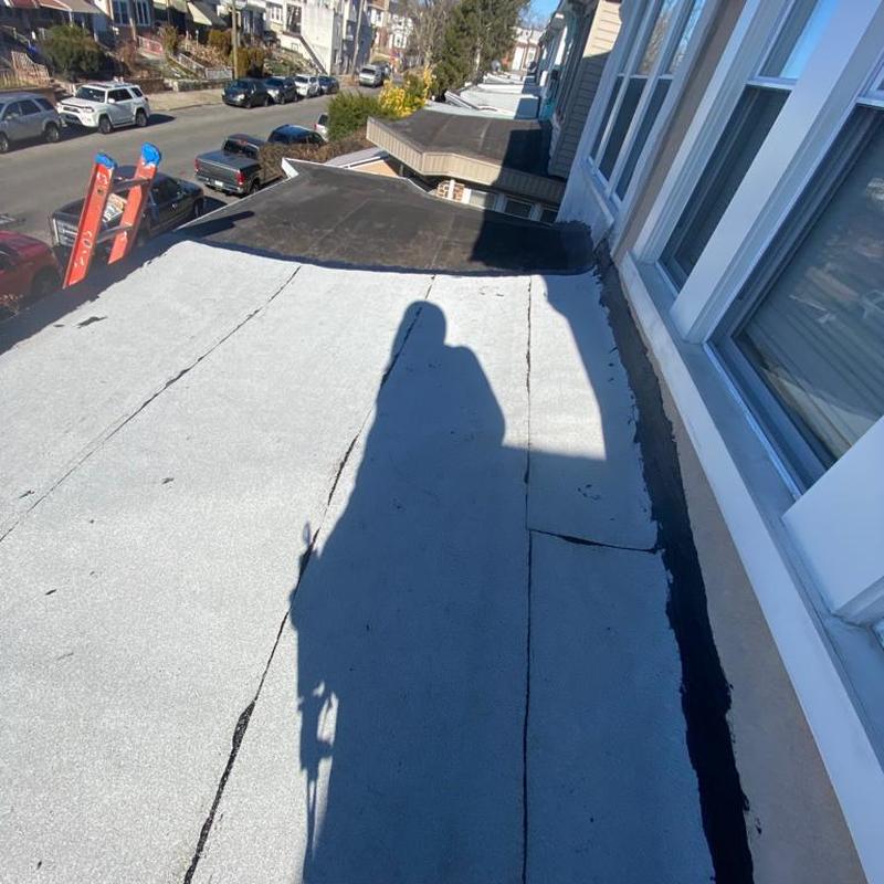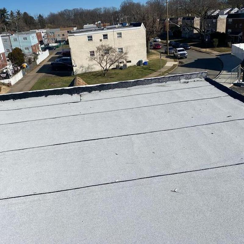 The Umbrella Roof team installed a Firestone Modified Bitumen flat roof system on a building in Philadelphia's Torresdale neighborhood, enhancing durability and weather resistance with long-lasting materials suited for local climate conditions.