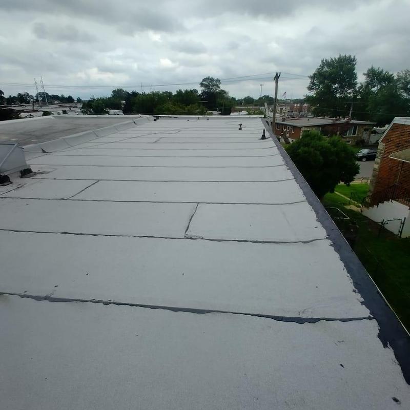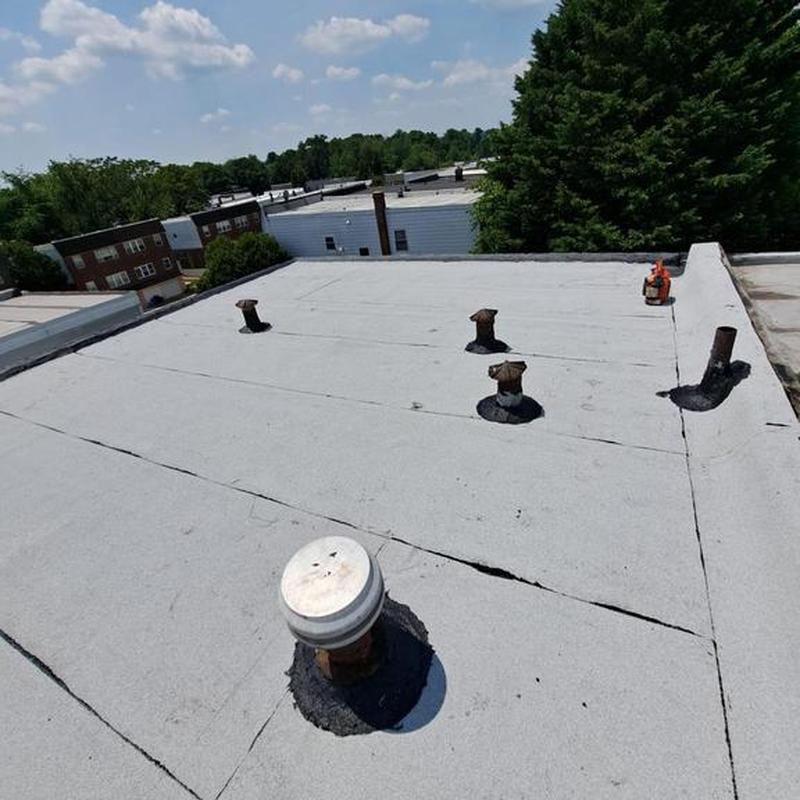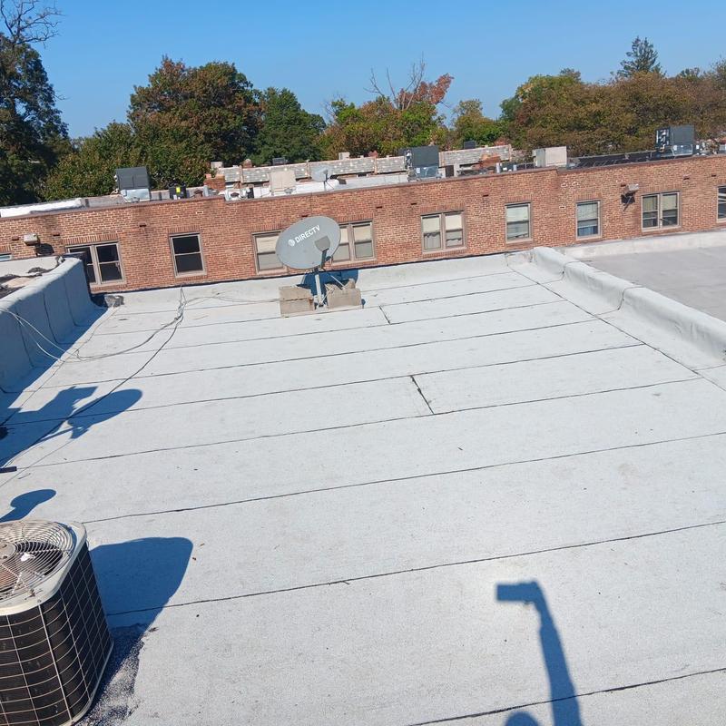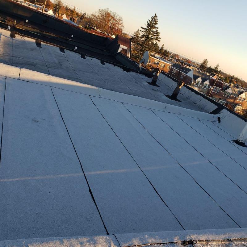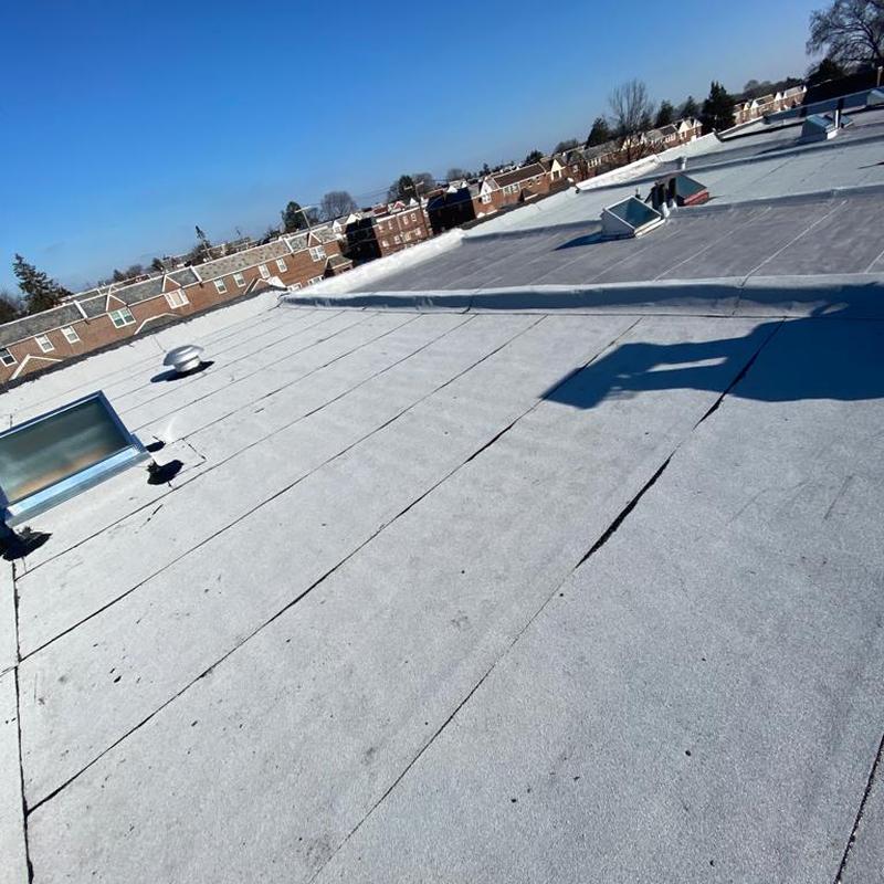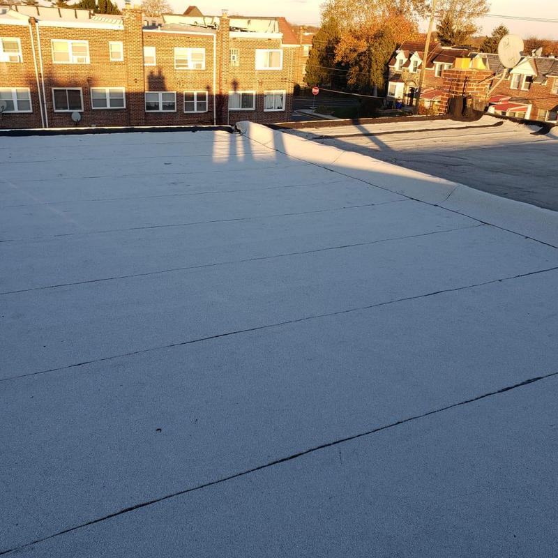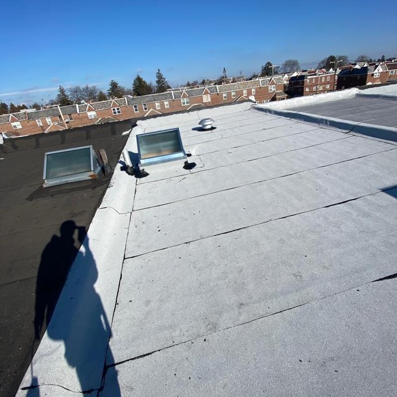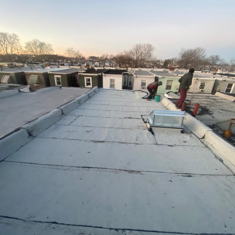 The Umbrella Roof team installed a Firestone Modified Bitumen flat roof system on a building in Philadelphia's Torresdale neighborhood, enhancing durability and weather resistance with long-lasting materials suited for local climate conditions.
