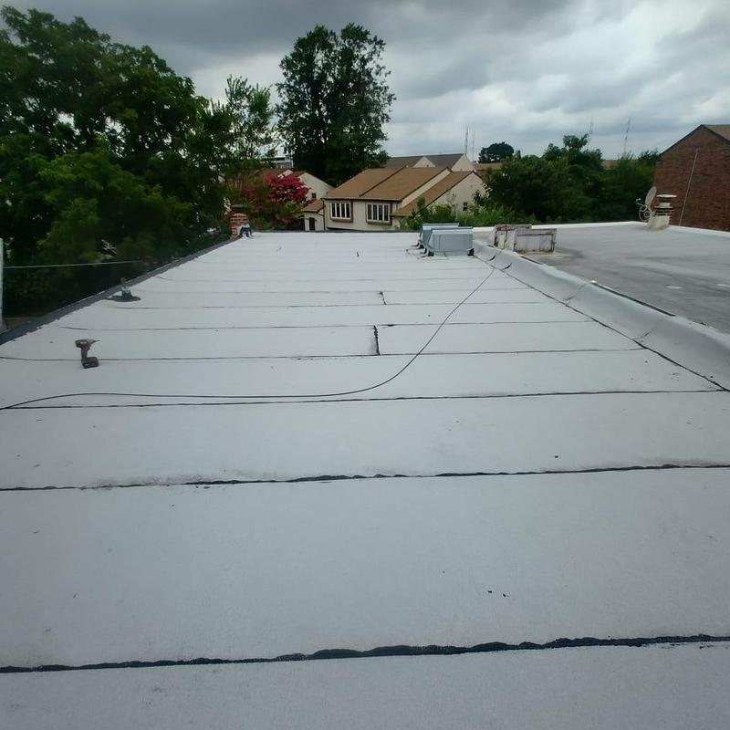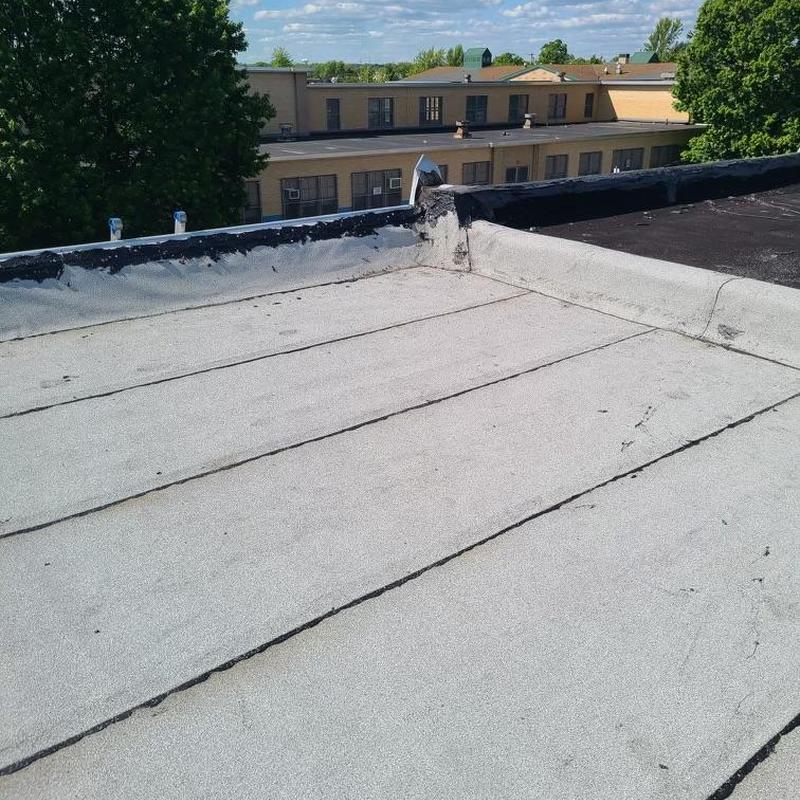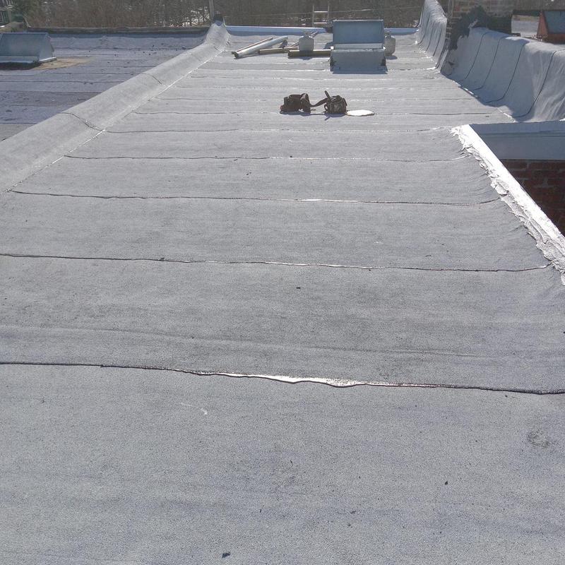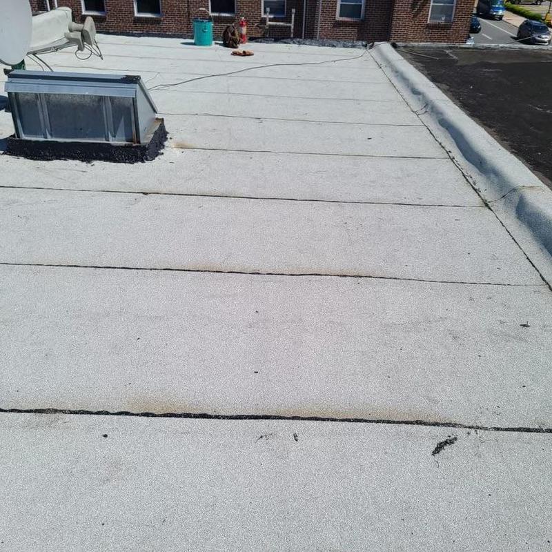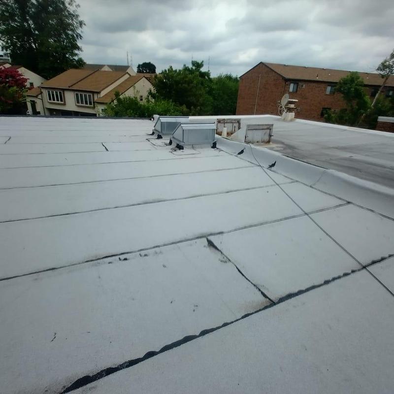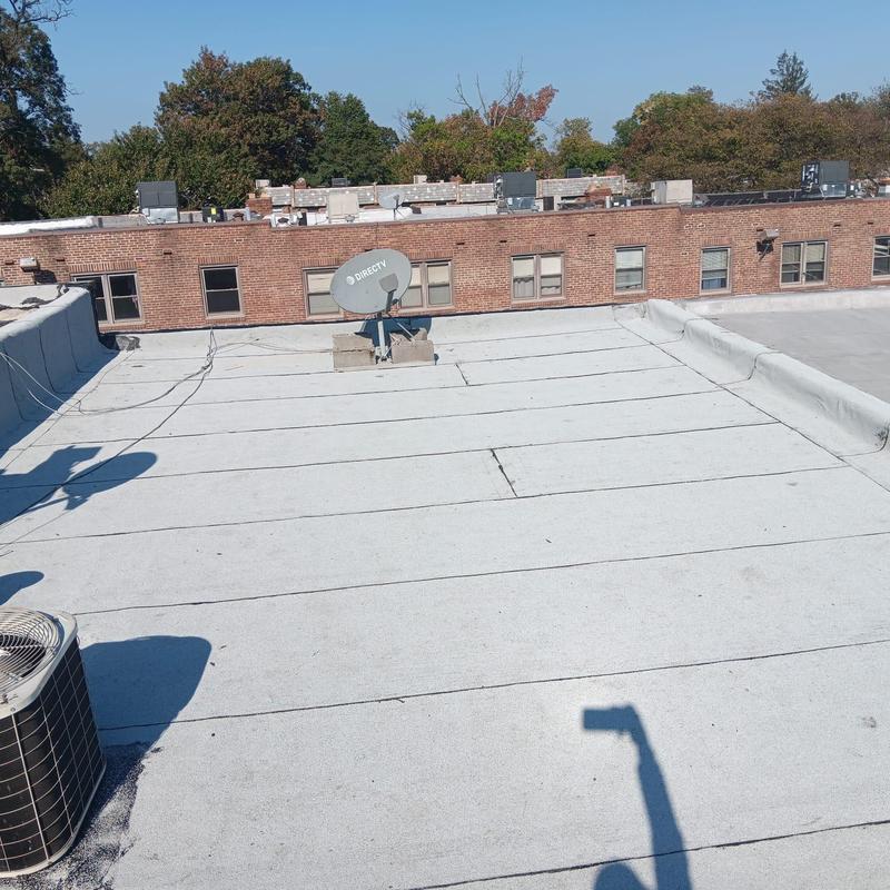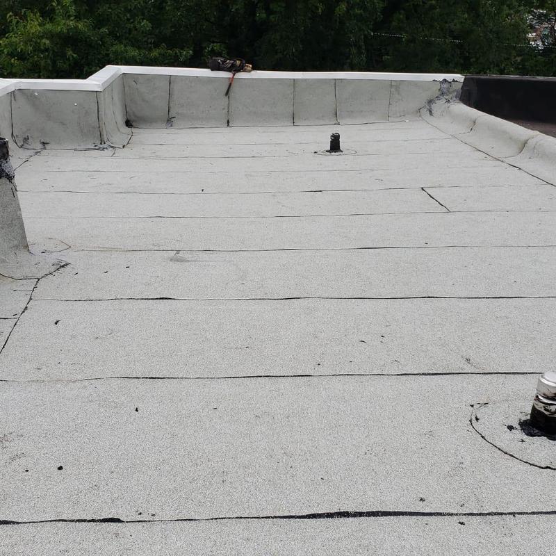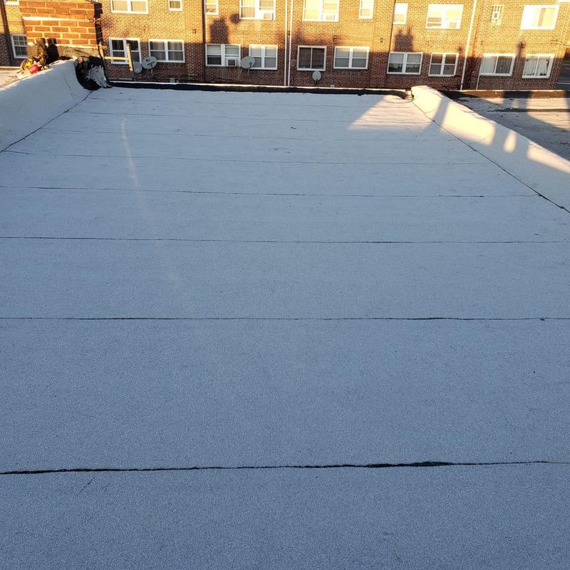 The Umbrella Roof team installed a Firestone Modified Bitumen flat roof system on a building in Philadelphia's Torresdale neighborhood, enhancing durability and weather resistance with long-lasting materials suited for local climate conditions.