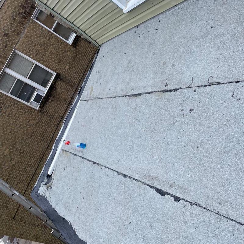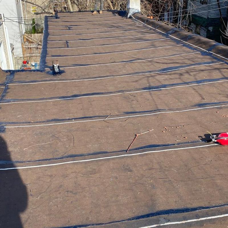 The Umbrella Roof team installed a new Modified Bitumen flat roof system on a property in the Feltonville neighborhood of Philadelphia, PA. This flat roof installation helps protect the structure and manage water runoff effectively.