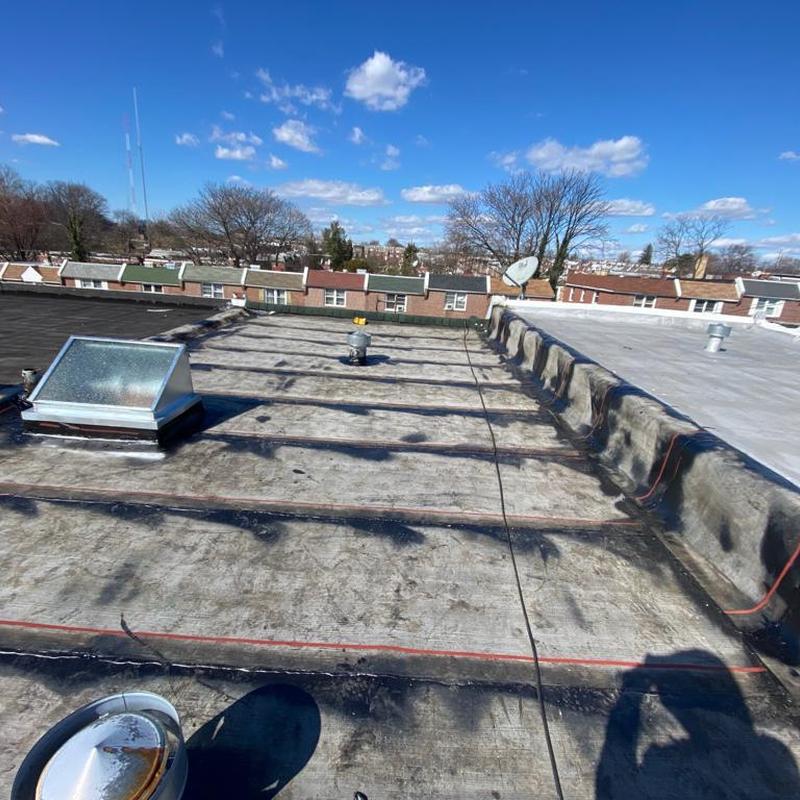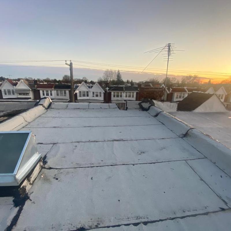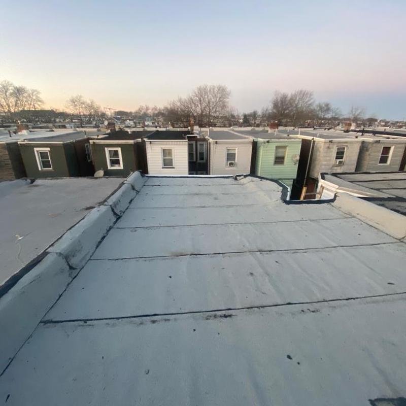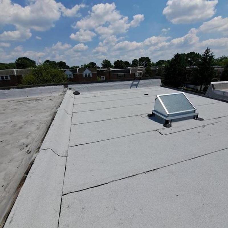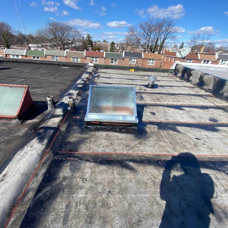 Umbrella Roof installed a Firestone Modified Bitumen flat roof and a new skylight on a residential building in the Carroll Park neighborhood of Philadelphia, PA. This flat roof system offers consistent surface protection and supports improved natural light through the skylight installation.