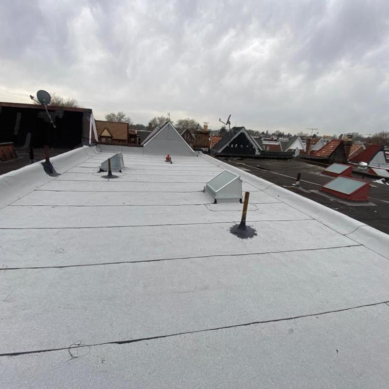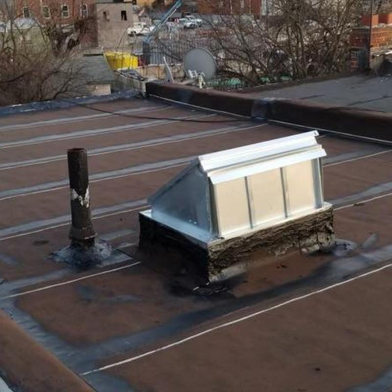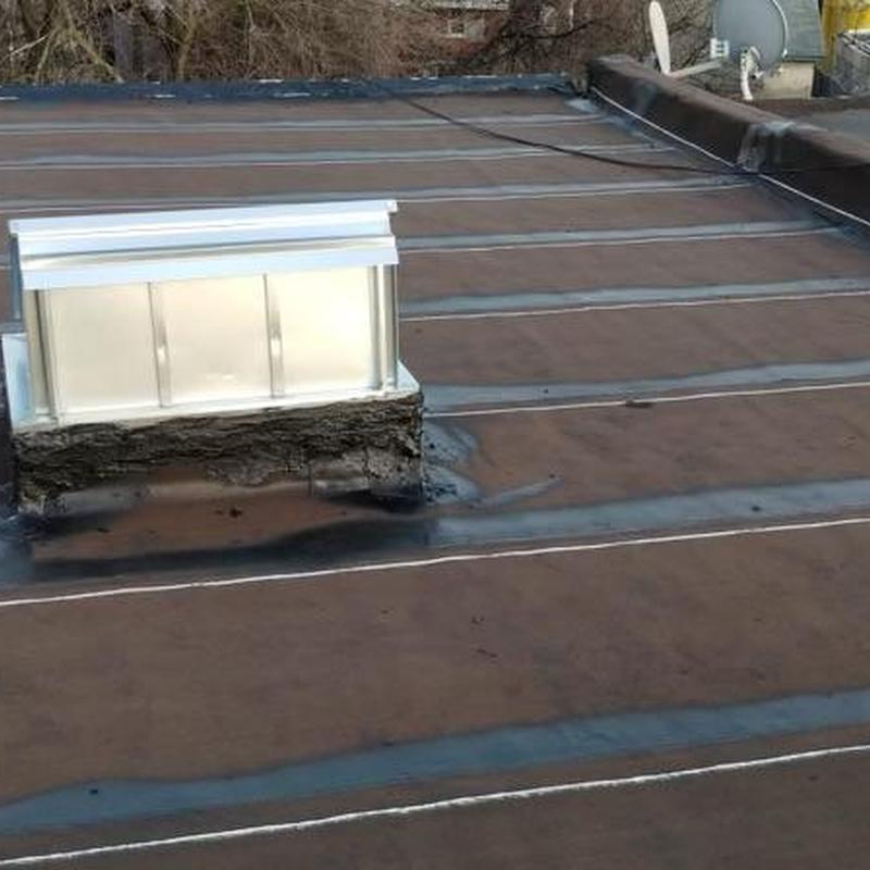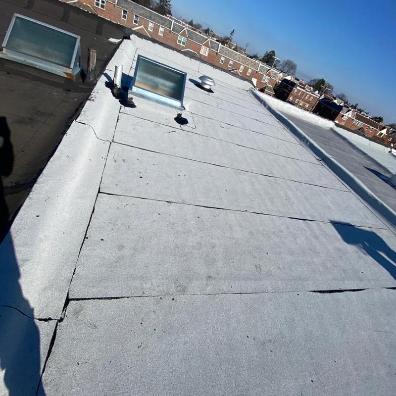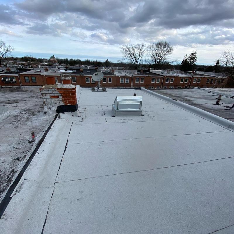 Umbrella Roof installed a Firestone Modified Bitumen flat roof and a new skylight on a residential building in the Carroll Park neighborhood of Philadelphia, PA. This flat roof system offers consistent surface protection and supports improved natural light through the skylight installation.