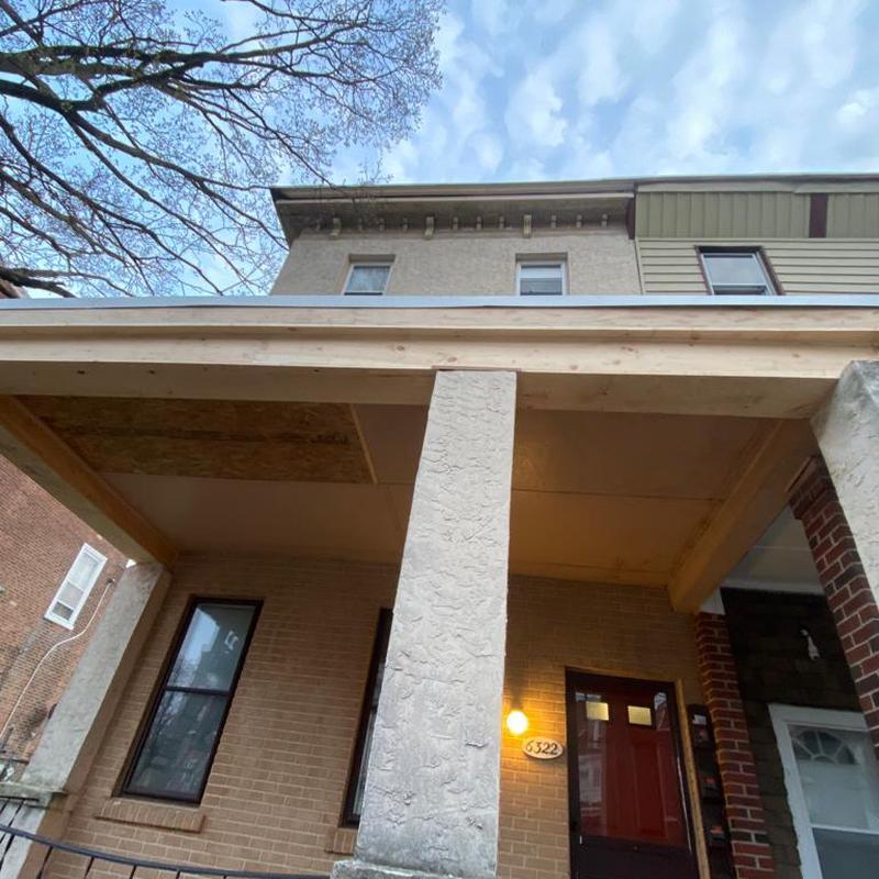Umbrella Roof installed a Firestone Modified Bitumen flat roof system on a porch roof in the Haddington section of Philadelphia, PA. The team also completed structural repairs to the porch roof during the installation.
