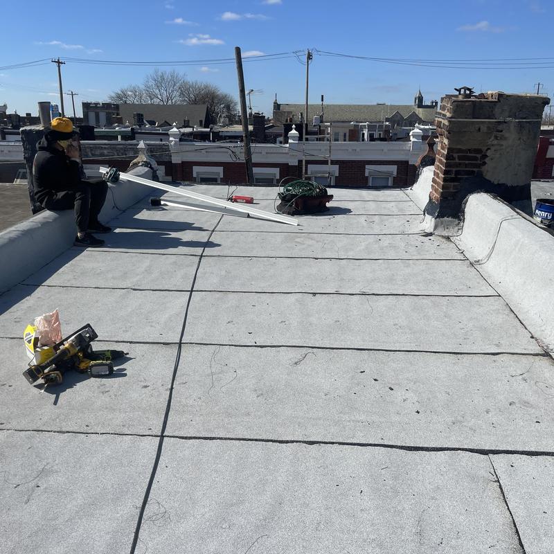 The Umbrella Roof team installed a Firestone Modified Bitumen flat roof system on a property in North Philadelphia, PA. This project involved replacing the existing roof to improve durability and water resistance using a heat-applied membrane suitable for flat surfaces.