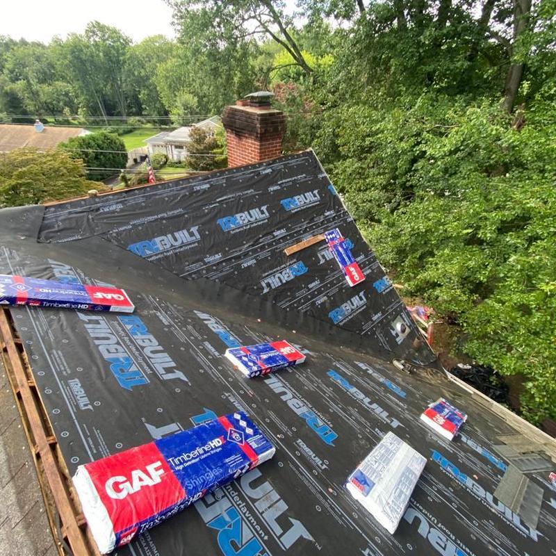 Umbrella Roof completed a full shingle roof replacement in the Parkwood neighborhood of Philadelphia, Pennsylvania. The team removed worn shingles and decking, installed new roof decking, drip edge, ice and water shield, synthetic underlayment, GAF Timberline HDZ shingles, ridge vent, and all necessary flashings.
