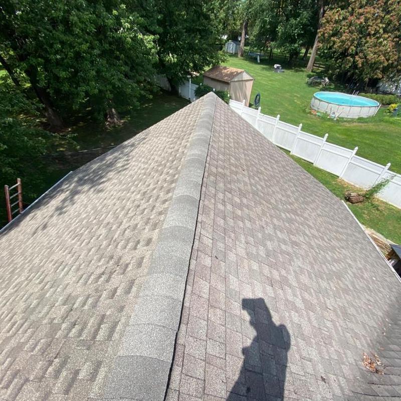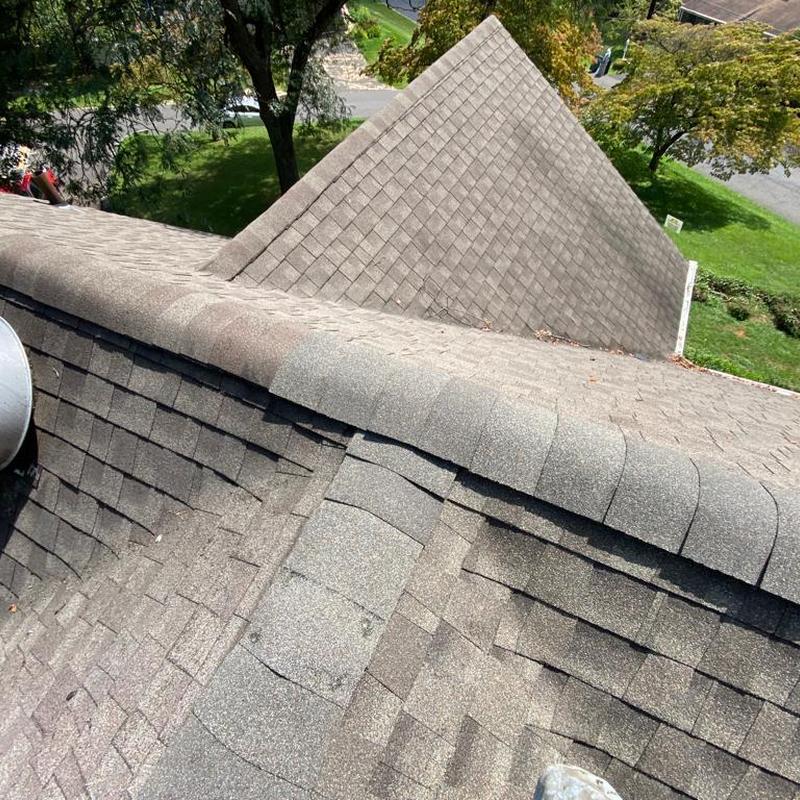 Umbrella Roof repaired a shingle roof in Elkins Park, PA. The team replaced missing shingles and sealed the ridge caps to prevent leaks and protect the structure from water damage.